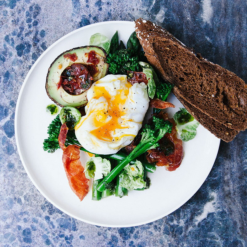 - 5Spread the avocado mixture evenly over the toast slices, and top with the fried eggs and the spinach. Add your choice of toppings if desired. Enjoy!